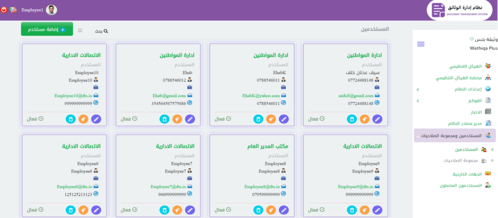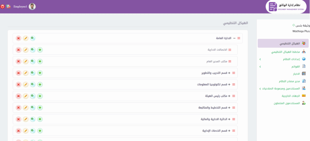 The system allows adding and managing the organization’s structure, aligning it with operational needs. Administrators can assign users to their respective departments and define permissions at the departmental level.