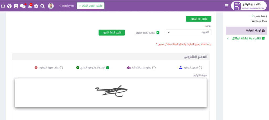The system provides electronic signature functionality, allowing each employee to customize their signature, which is securely linked to their username and password.